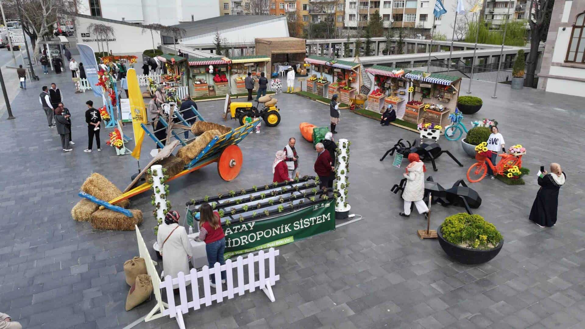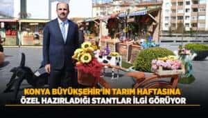 Konya Büyükşehir Belediyesi, Tarım Haftası ve 22. Konya Tarım Fuarı kapsamında şehir genelinde çeşitli noktalarda tarım temalı özel stantlar oluşturdu. Bu stantlar, vatandaşların tarım konusunda bilinçlenmesine katkı sağlıyor ve tarımsal üretimin önemini vurguluyor.